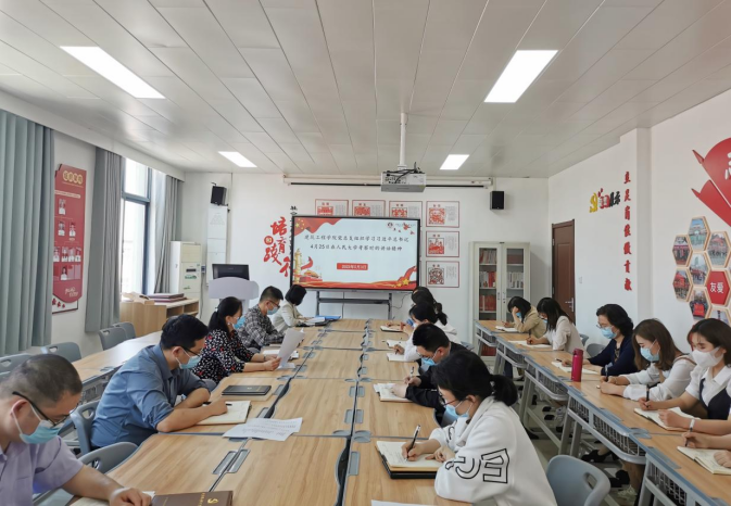 2022年5月3日下午,太阳集团tyc539党总支组织全体教师在516党员活动室学习习近平总书记在中国人民大学考察时的重要讲话精神,本次学习旨在落实立德树人根本任务,培养“听党话、跟党走”堪当民族复兴重任的时代新人,为全体教师指明目标方向、提供根本遵循。学习采取线上、线下相结合的方式,会议由太阳集团tyc539党总支书记马春燕主持。