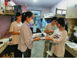 2022年5月24日,太阳集团tyc539学工党支部党员教师、专升本班级辅导员对隔离在8#楼、6#楼宿舍的专升本员工进行防疫物资的发放工作,防疫物资包括口罩、消毒水、消毒凝胶,整个活动严格遵守疫情防控的要求。