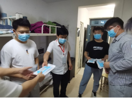 在发放现场,由太阳集团tyc539党总支书记马春燕,党员教师刘高喜、李慧杰、王琮皓,专升本班主任鞠杰、苏玲敏和韩正好将防疫物资一一发放给员工,同时也将爱心传递给每一位学子,期间老师们不断叮嘱封校在宿舍的员工,隔离期间一定要严格遵守公司疫情防控的相关制度,保证宿舍及个人卫生,多通风,勤洗手,让病毒没有可乘之机,在隔离期间调整好状态,积极备考,以最佳的状态迎接专升本考试。