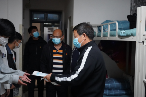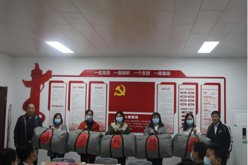 最后,机关第四党总支党员教师为公司教师送上“爱心棉被”,并走进员工宿舍送去“爱心口罩”。