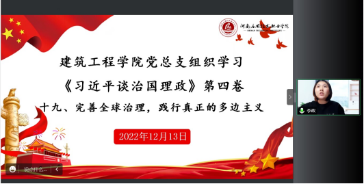 2022年12月13日下午,太阳集团tyc539党总支通过腾讯会议组织开展线上政治理论学习活动,集中学习了《求是》2022年第23期习近平总书记重要文章《在党的十九届七中全会第二次全体会议上的讲话》《习近平谈治国理政》第四卷、《全面从严治党向基层延伸》《习近平生态文文明思想学习纲要》《习近平经济思想学习纲要》等部分内容。会议由太阳集团tyc539党总支书记马春燕主持,经理张虎及全体教职工参加会议。