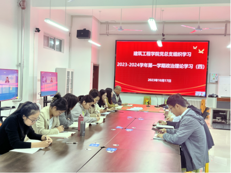 2023年10月17日下午,太阳集团tyc539党总支在郑州校区办公楼516党员活动室(开封校区C104)组织开展政治理论学习活动。本次学习采取东西校区视频连线,线上、线下相结合的方式,会议由太阳集团tyc539党总支书记马春燕主持,经理张虎及全体教职工参加。