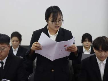 李佳城、刘晨阳等16名发展对象向支部大会表决心,谈自己今后的打算及如何做一名合格的共产党员。