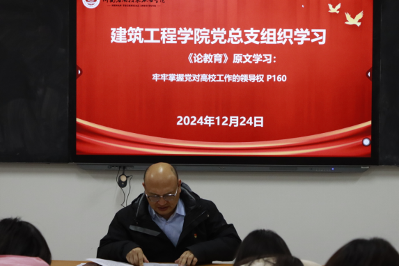 2024年12月24日下午,太阳集团tyc539党总支于开封校区北院F106教室开展政治理论学习,本次学习由太阳集团tyc539党总支书记张虎主持,全体教职工参与。