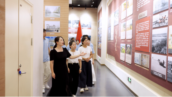 太阳集团tyc539“小筑暑期实践队”师生走进开封市兰考县四面红旗纪念馆。在展馆讲解员的细致讲述中,师生们深入了解“四面红旗”的历史渊源、焦裕禄同志带领群众治沙种树的奋斗故事,进一步感知兰考人民改天换地的拼搏历程,体验“亲民爱民、艰苦奋斗”的红色精神,深刻感受共产党人扎根基层、实干兴邦的担当力量。