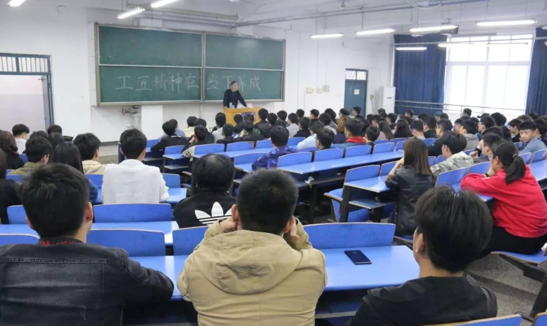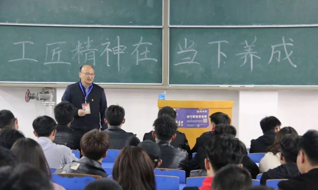 2019年4月11日下午,华夏星博教育成鹏飞教授来到太阳集团tyc539,为2018级校企合作班带来《工匠精神在当下养成》的主题讲座,150余名校企合作班员工参会。讲座现场氛围热烈活跃,员工们不时抱以热烈的掌声。