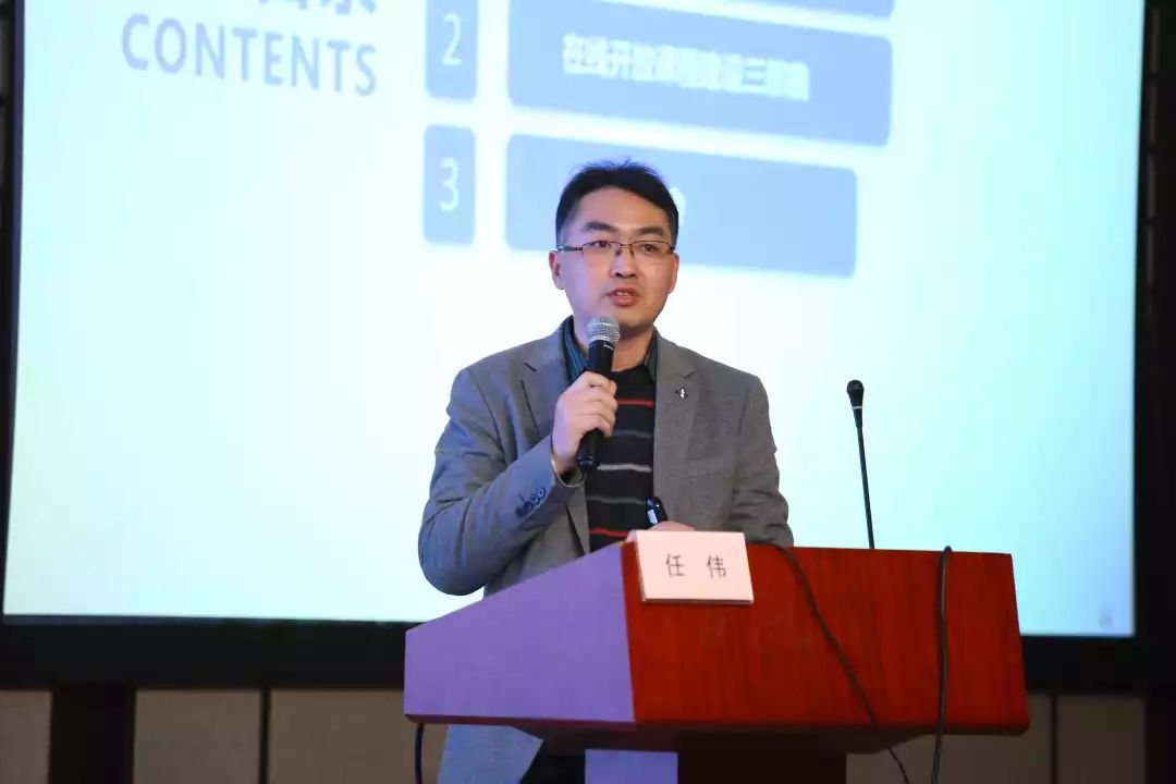 任伟老师就“公司省级精品在线开放课程的建设经验”作主题报告,分享了在课程建设中公司层面的保障措施、团队分工及技术突破,总结了课程建设理念的四化,即“教学方式混合化”、“教学资源开放化”、“员工学习个性化”、“学习过程社会化”。