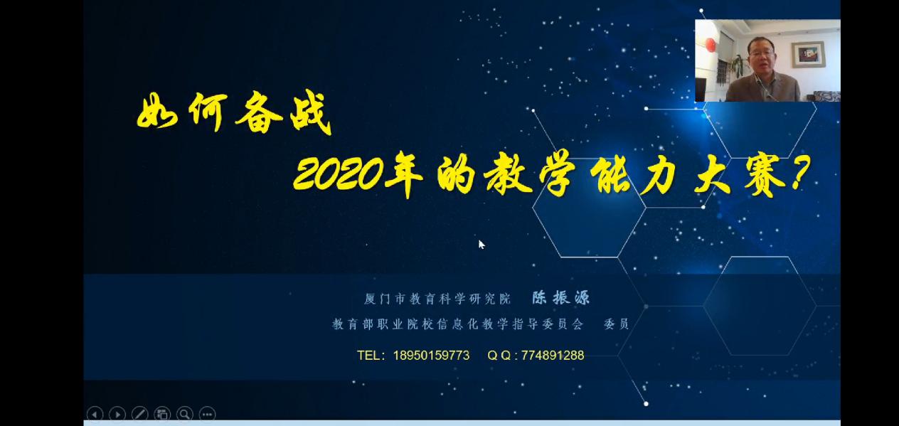 第一天,由厦门市教育科学研究院职教室原主任陈振源从新政解读、释疑解惑,直击大赛评委要素,参赛备赛锦囊三个方面向大家进行了讲解。第二天,淮安信息职业技术公司副教授刘万辉主要从获奖的路径、宏观教学理念的选择、教学能力比赛作品特征、教学环境的构建、比赛的选题、教学过程的设计等六个方面进行了讲解。