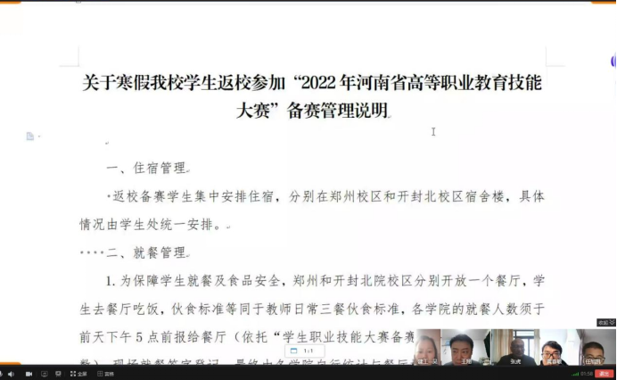 为积极备战河南省高等职业教育技能大赛,提振备战信心,争取再创佳绩。2023年2月2日上午,公司召开关于寒假公司员工返校参加“河南省高等职业教育技能大赛”备赛会议,经理张虎、副经理任旭凯及各项目负责人参加了会议。
