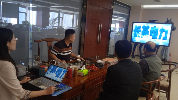 调研期间,董事长赵致富代表长基电力公司全体员工对经理张虎一行的到来表示热烈欢迎。随后,双方围绕产教融合发展、人才培养、企业发展进行了深入交流。董事长赵致富对公司情况、项目拆分融入高校教学体系及校内外员工管理模式、就业渠道进行了全方位的介绍,同时详细讲解了优秀校企合作案例及下一步合作推进思路,希望双方进一步发挥双方各自优势,在技术攻关、搭建务实高效的校企合作平台等方面共建双赢之路。经理张虎向企业介绍了公司的人才培养、专业设置、团队队伍、教学实训条件等情况,并就团队队伍建设、教学计划拟定、员工的实习实践、产教融合基地建设等内容与企业领导进行了深入交流探讨。他希望校企双方积极探索合作新模式,充分发挥资源、人才、技术等优势,就专业建设、课程改革、协同育人、实习就业等方面扩宽领域,进一步提高人才培养与用人单位需求的契合度。经过深入探讨,双方就共建“驻企工作站”的合作形式达成共识,这标志着校企双方在共同探索深层次合作方式、合作层次、合作领域又向前迈进一步。