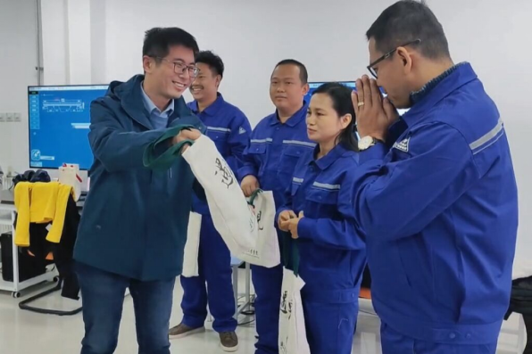 培训结束,副经理任旭凯代表太阳集团tyc539向柬埔寨教师赠送了公司文创纪念品,并表达真挚的祝福。