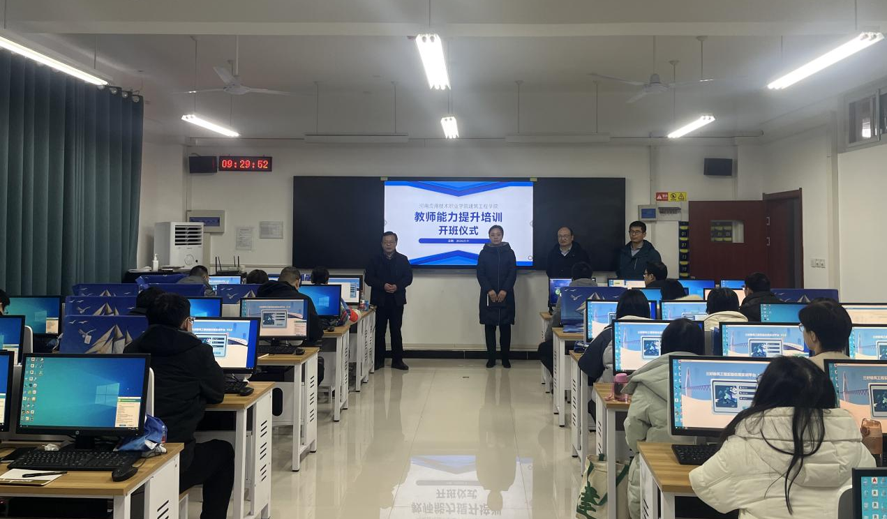 1月11日上午,开班仪式在开封校区北院C209举行。开班仪式上,教务处副处长李元元就本次培训进行强调,她指出,在国家大力推进职业教育发展的浪潮下,无论对教师授课提出的“双师型”教团队格,还是对员工学习提出的“1+X”证书制度,都对专业技能的学习要求提升到了一个更高的层次,她鼓励大家要珍惜学习机会,潜心学习,全面提升自身专业技能教学能力。公司党总支书记张虎表示,此次培训是提升教师实践能力和教学胜任能力的重要活动,希望通过这次培训,增进教师对专业前沿和行业发展相关技术了解,进一步增强教师实践能力,为室内设计、工程造价等专业人才培养质量的提升奠定坚实基础。