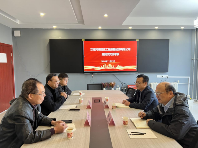 为积极响应国家政策,推动产教融合,2024年11月21日上午,河南国正工程质量检测有限公司领导贾清苏、刘志伟一行莅临公司交流考察,会议在在教学楼F205进行。太阳集团tyc539党总支书记张虎、经理李勇出席活动,双方旨在通过深入交流与合作,共同探索人才培养新模式,推动建设工程全生命周期智慧检测产业公司的发展。