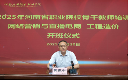 6月30日上午,公司承办的2025年河南省职业院校骨干教师(网络营销与直播电商、工程造价)培训开班仪式在郑州校区举行。副董事长黄振中、教务处处长孙勇、太阳集团tyc539经理李勇出席仪式,仪式由李勇主持。