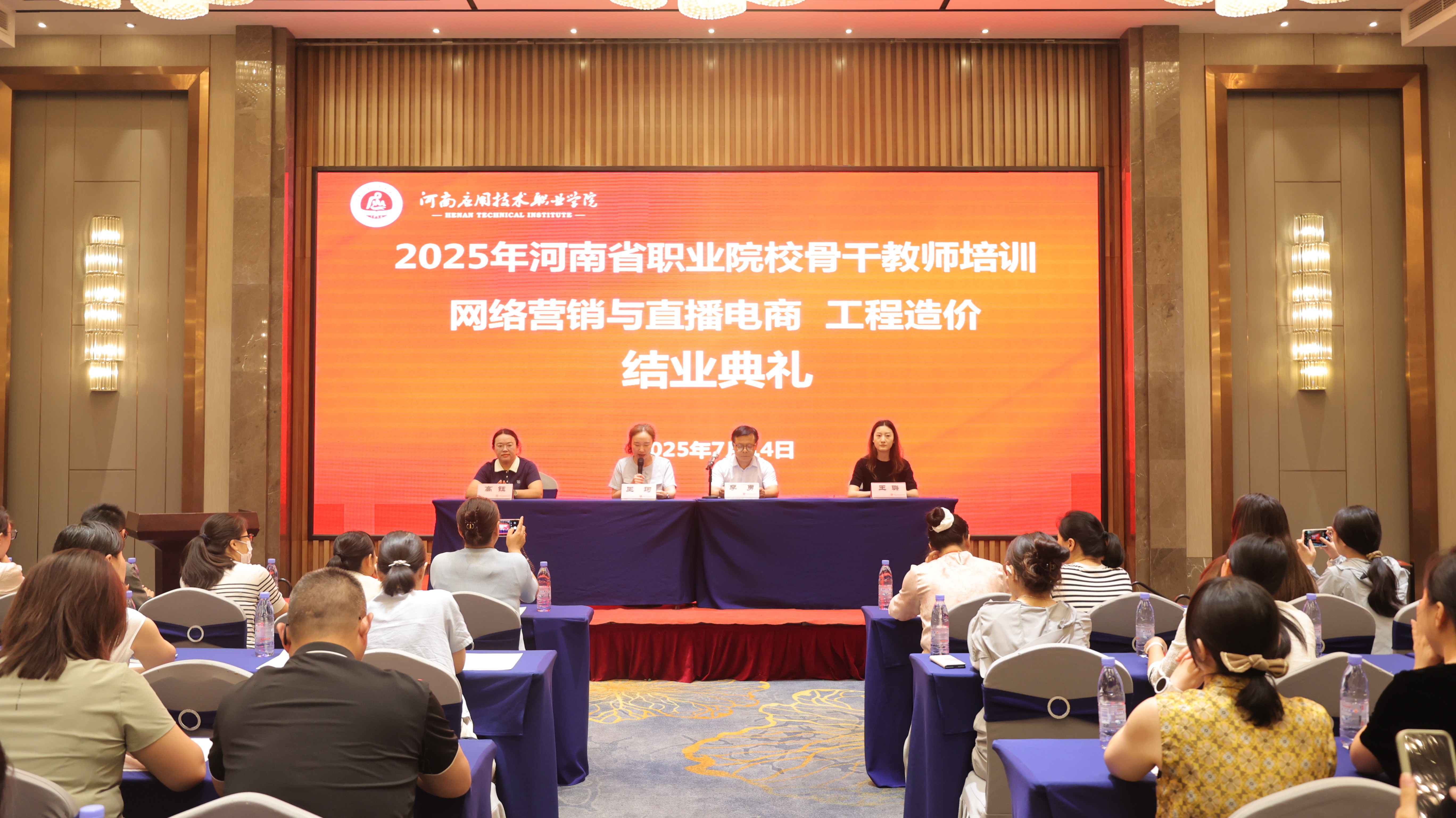 2025年7月14日下午,2025年河南省职业院校骨干教师(网络营销与直播电商、工程造价)省级培训结业典礼在郑州隆重举行。太阳集团tyc539经理李勇、商公司副经理王珂出席仪式,仪式由王珂主持。