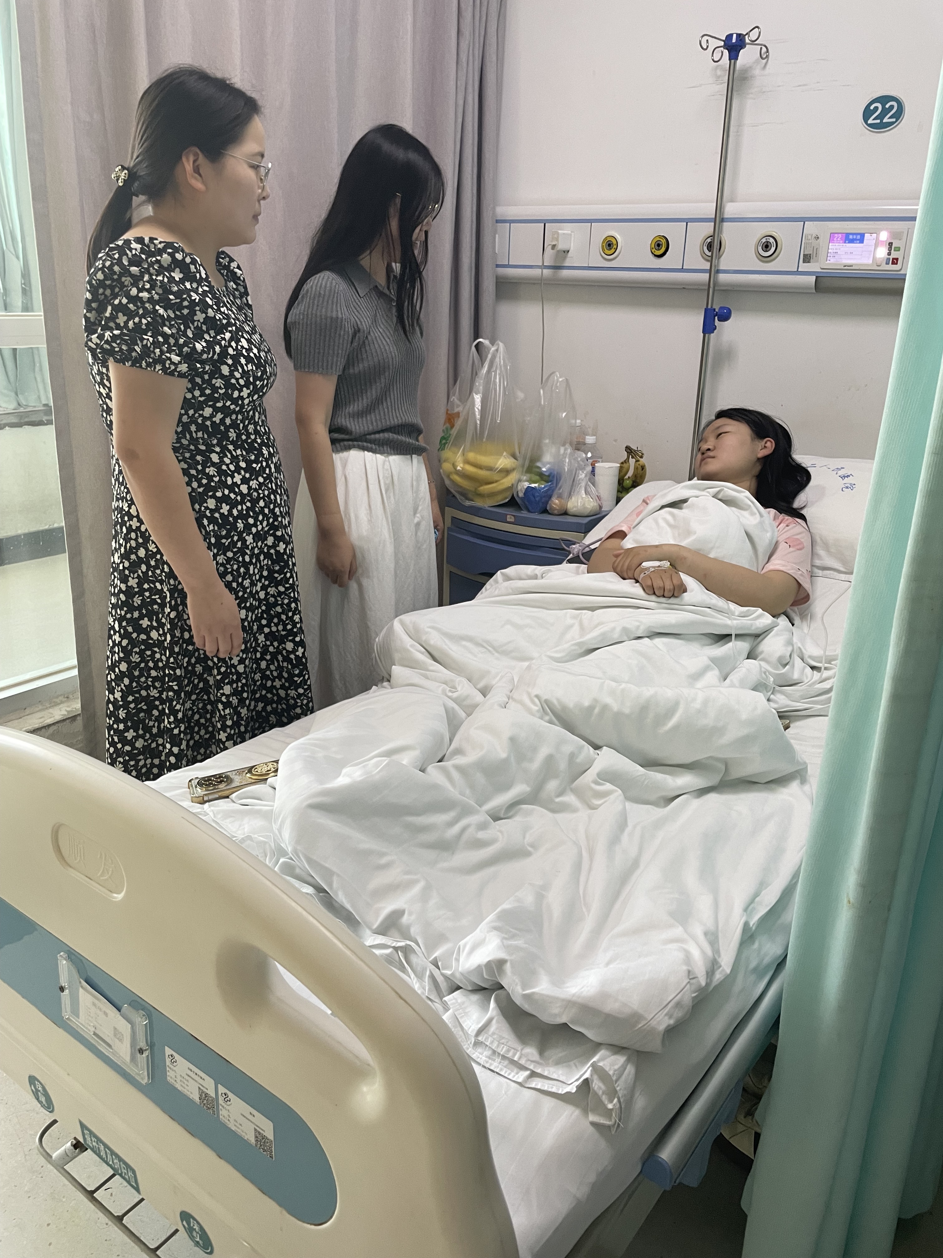 针对郑州灿起科技实业有限公司实习员工陈年慈遭遇交通事故受伤的情况,李玉飞老师第一时间与辅导员张寒冰一同前往探望,详细了解员工伤情与康复进展,协助企业与员工处理保险理赔事宜,为员工提供暖心关怀与实际帮助,让员工在异乡感受到公司的温暖支持。