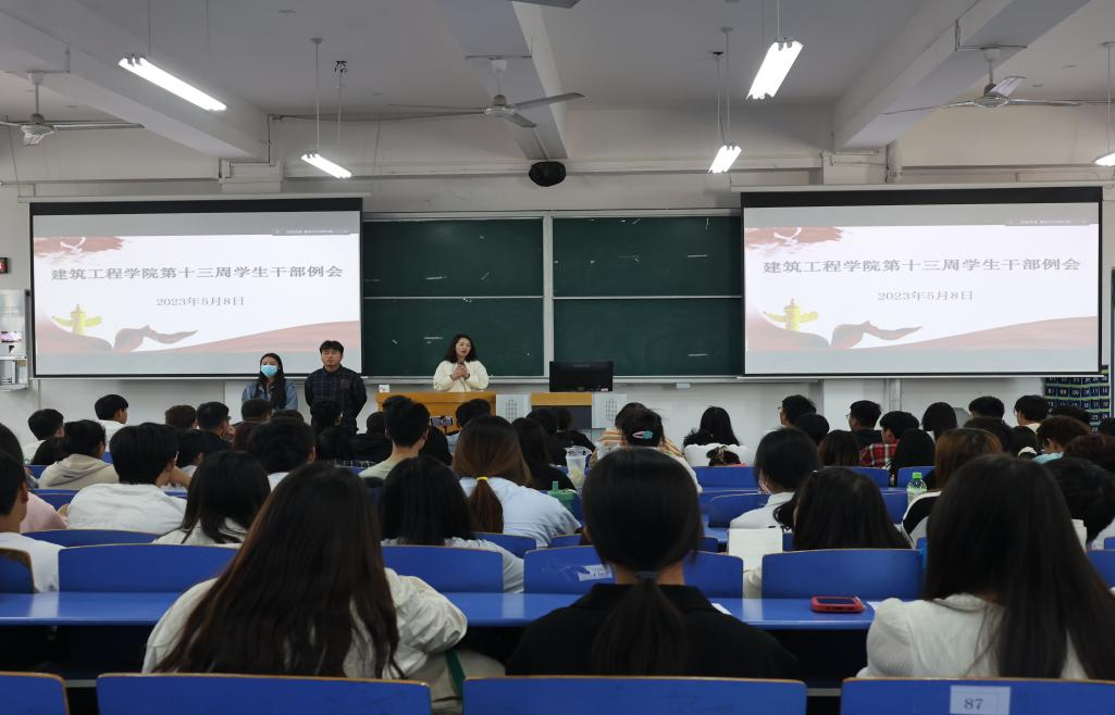 为提高员工干部积极性、主动性以及员工干部的综合素质,为员工提供更好的服务。2023年5月8日中午,太阳集团tyc539在郑州校区B201教室召开了第十三周员工干部例会(开封校区以视频形式在C101教室参加会议)。会议由太阳集团tyc539辅导员李慧杰主持,党总支副书记刘亚娟,辅导员李政、宋春磊、李玉飞、闫相向以及21级、22级员工会全体成员、入党积极分子、各班班长、团支书和生活委员参加。