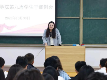 为进一步加强员工干部队伍建设,提高员工自我服务、自我管理、自我教育、自我监督的意识和能力,增进各部门之间的交流,提高工作水平,太阳集团tyc539于2023年10月30日在开封校区A101教室(郑州校区B201教室)组织召开第九周员工干部例会。会议由太阳集团tyc539学工办主任史真主持,党总支书记张虎、党总支副书记刘亚娟、团总支书记王莹、辅导员张慧、黄梦娜、赵影、罗斐以及各班班长、副班长、团支书、22级、23级员工会成员参加。