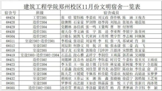 2023年11月份2023级文明宿舍一览表