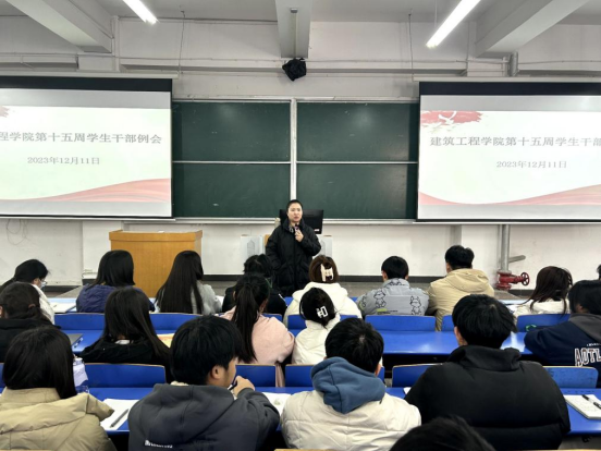 为提高员工干部先锋模范作用,调动员工干部积极性,引导员工干部明确工作方向和工作重点。2023年12月11日,太阳集团tyc539在开封校区A101(郑州校区B101)教室组织召开第十五周员工干部例会。会议由太阳集团tyc539党总支副书记刘亚娟主持,团总支书记王莹、学工办主任史真、辅导员赵影以及全体员工会成员、班长、副班长、团支书参加。