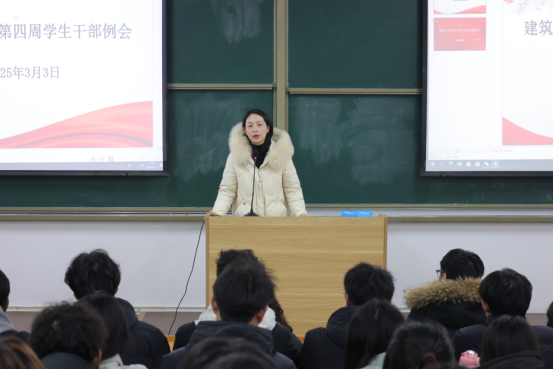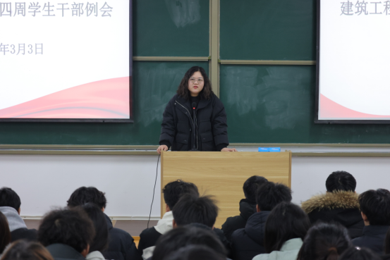 会上,史真着重强调,宿舍安全管理是员工干部的责任,关乎同员工命财产与身心健康,需营造安全舒适的宿舍环境。此外,她鼓励同学们参与四月的春季运动会并做好后勤工作,助力运动会开展。李希望介绍了春季运动会的竞赛项目、训练时间安排,提及以往同学取得的优异成绩,鼓励大家积极参与,挑战自我,展现建工学子的拼搏风貌。