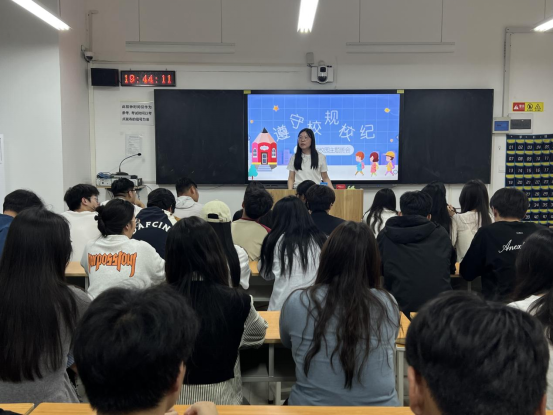 “遵守校规校纪 共建和谐校园”主题班会也有序开展。老师们带领员工逐条学习校规校纪,结合校园生活中的正反实例,让同学们深刻认识到遵守校规校纪对个人成长和校园秩序的重要性。同学们踊跃发言,承诺会从自身做起,以实际行动维护校园的和谐与稳定。