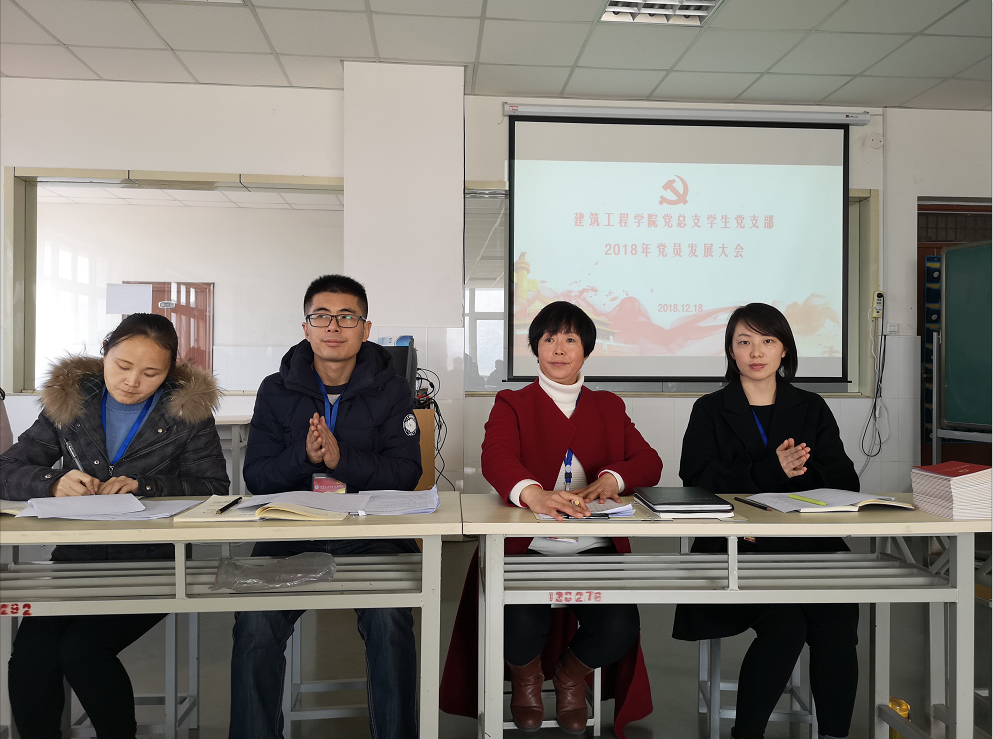 会议由党总支书记马春燕同志主持。首先由组织委员任旭凯清点人数,接下来由马春燕书记宣读31位同志的基本情况,紧接着由申请人汇报自己的情况,发展对象宣读《入党志愿书》,汇总对党的认识、入党动机、本人履历、现实表现以及应向党组织说明的其他问题。在严肃庄重的气氛下每位发展对象的第一党介绍人在其发言之后,分别对其情况向其他参会人员做以介绍和阐述;积极发展党内民主,由到场8位正式党员对31名发展对象进行逐个投票表决,最后31位发展对象全票通过,顺利被党组织接收为中共预备党员。