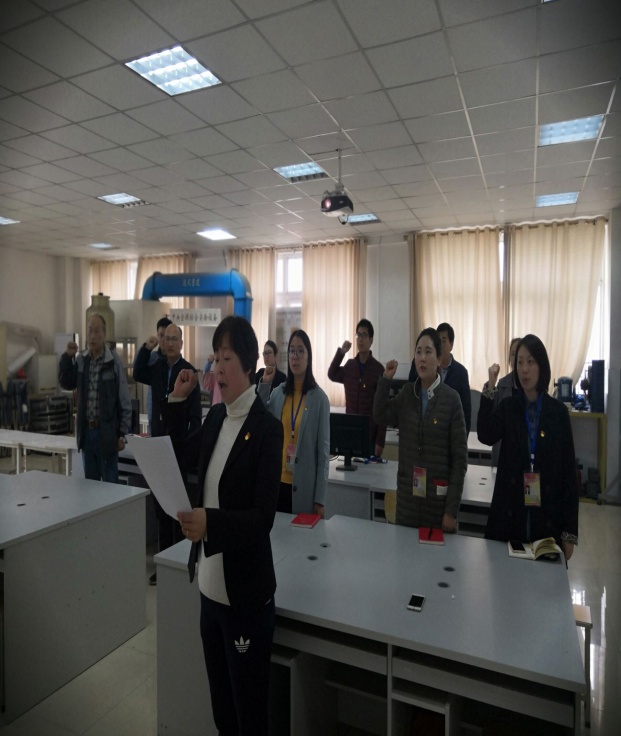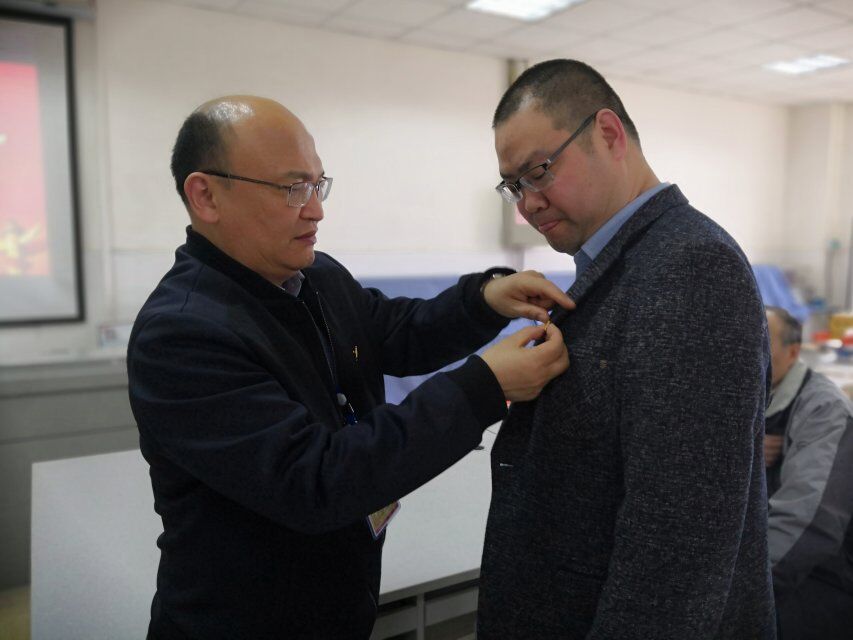 在佩戴党员徽章仪式上,马春燕副书记宣读了《中共太阳集团tyc539委员会关于开展党员佩戴党员徽章活动的通知》文件的内容。随后,公司党总支书记张虎、副书记马春燕分别为教工党支部和员工党支部党员同志佩戴党员徽章。最后,马春燕带领全体党员重温了入党誓词。