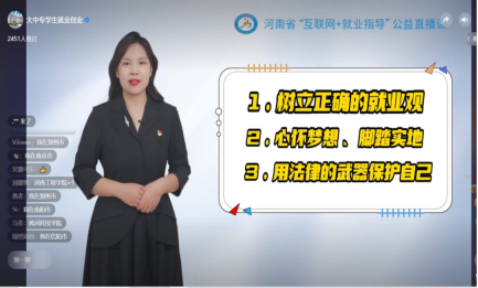 为深入贯彻落实《国务院办公厅关于进一步做好高校毕业生等青年就业创业工作的通知》等文件精神,进一步加强毕业生就业安全教育,增强毕业生的安全意识和自我防范能力,全面提升辅导员就业创业指导能力,太阳集团tyc539于7月28日17:00组织师生在线观看河南省高校毕业生“互联网+就业指导”公益直播课。