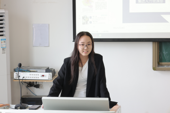 随后,孙梦帆就同学们关心的就业前景、职业发展路径以及公司的人才培养机制等方面进行了详细阐述。她表示,超凡装饰非常注重员工的个人成长和职业发展,提供了多样化的培训和学习机会,鼓励员工不断提升自己的专业技能和综合素质。在互动环节,同学们积极提问,就自己的职业规划、公司的工作环境、福利待遇等问题与人事专员进行了深入交流。人事专员耐心细致地回答了每一个问题,让同学们对超凡装饰有了更加全面和深入的了解。