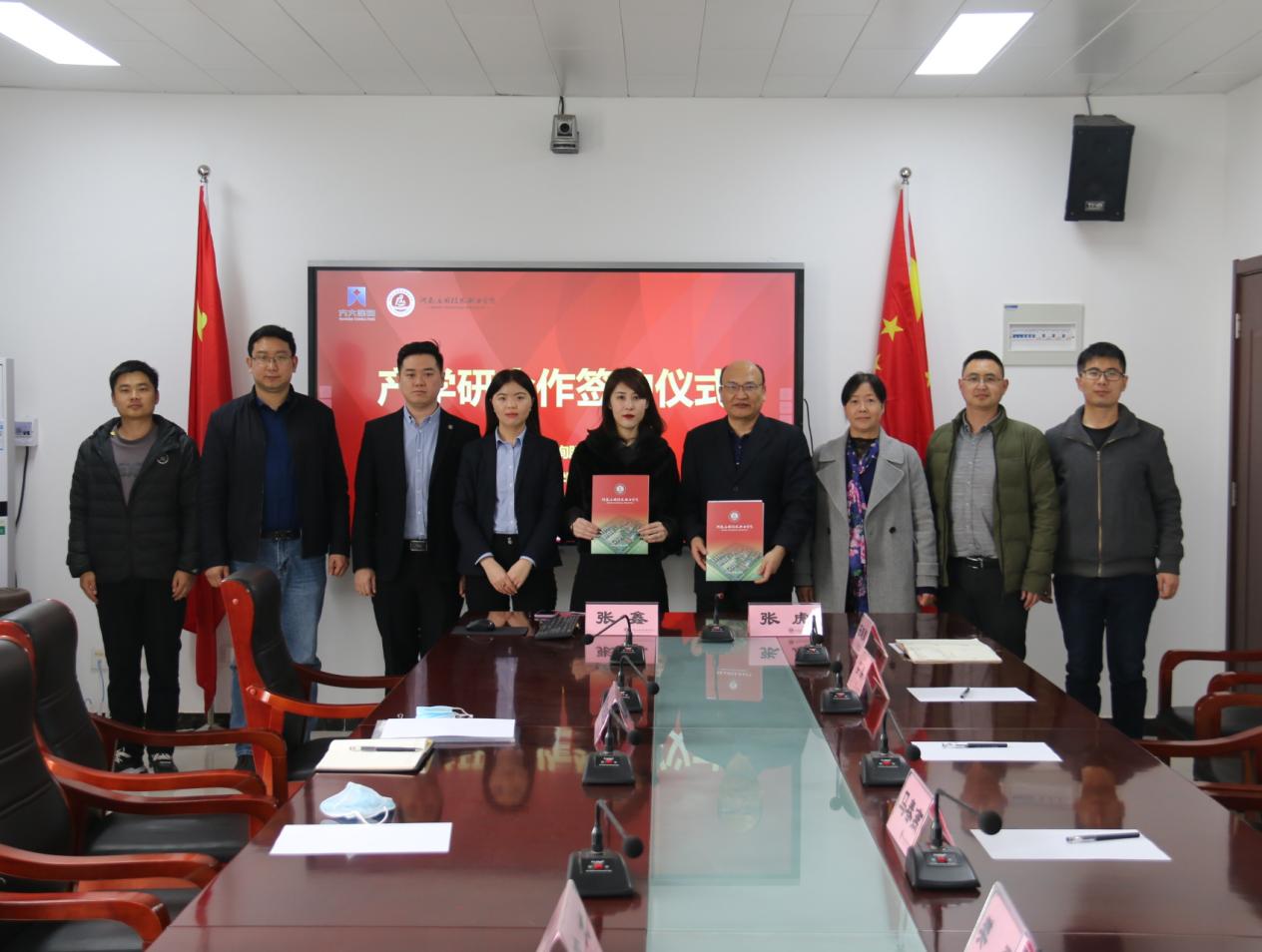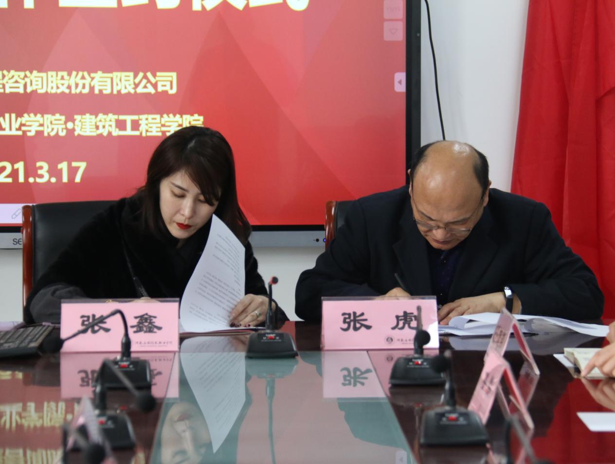 经理张虎与人资总监张鑫代表双方共同签署了产学研合作协议。与会双方代表围绕员工顶岗实习、教师挂职锻炼、订单培养产教融合协同育人等问题进行了探讨交流。