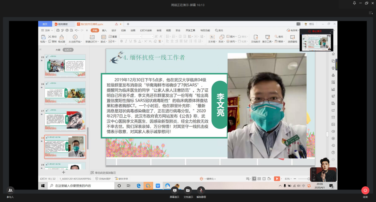 二、组织广大青年登录中华英烈网等网络平台表达对先烈、英烈以及牺牲在抗击疫情一线英雄们的缅怀、致敬之情。
