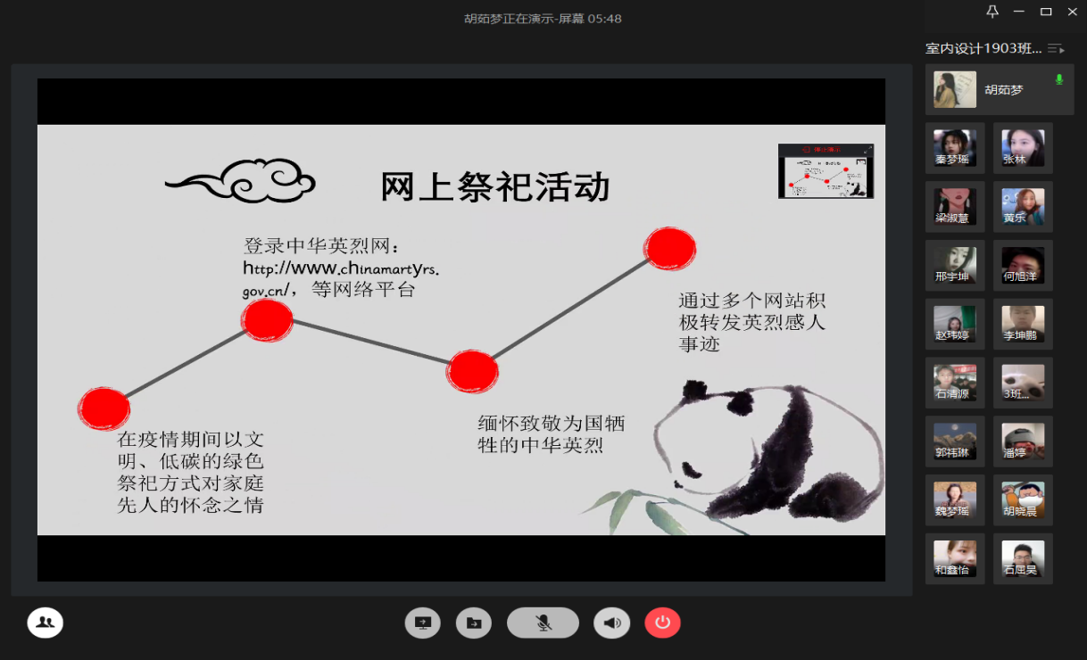 组织团员青年学习黄继光、赵一曼、邓中夏等英雄事迹,学习他们一个个顶天立地、视死如归、大义凌然,用鲜血和生命谱写了一曲曲惊天动地的壮歌,铸就了为民族独立、人民解放和新中国的建设而舍生忘死、前仆后继、气吞山河的大无畏精神。带领同学们观看《凉山木里火灾牺牲烈士女儿给父亲扫墓留言爸爸我很想您》、《黄山烈士陵园推出“云祭扫”,视频连线帮家属扫墓》等视频,充分利用团属微信公众平台,推出“文明缅怀”专题,通过鲜花追思、丝带祭祀、缅怀寄语等方式,引导青年员工运用线上平台寄托哀思,组织广大青年员工,缅怀烈士、追思先人,表达对先烈的感恩和敬仰。