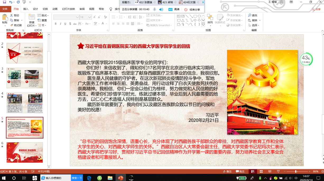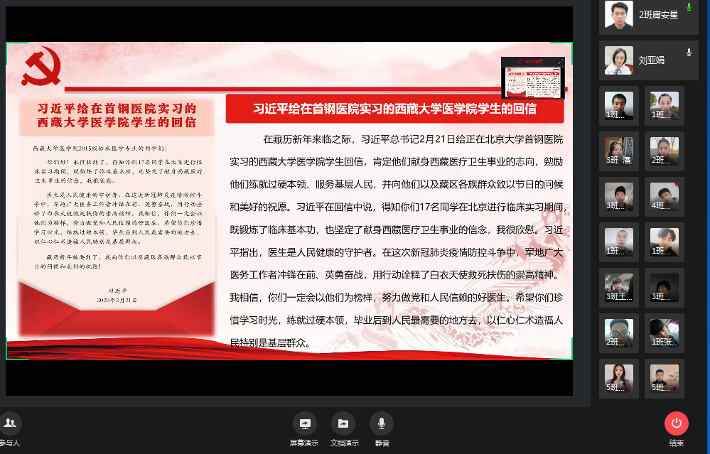 2020年4月13—16日,在太阳集团tyc539团总支的组织下,各团支部积极学习《习近平总书记给在北京大学首钢医院实习的西藏大学医公司员工的回信》,并以此为契机开展了网络青年团课集中学习。