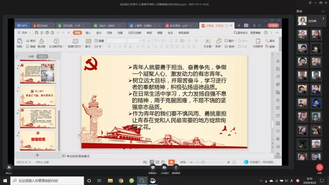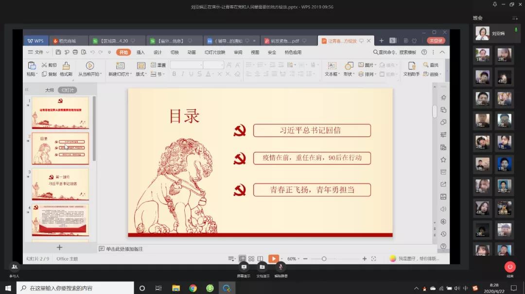 2020年4月20—24日,在太阳集团tyc539团总支的组织下,各团支部积极学习“习近平回信勉励北京大学援鄂医疗队全体‘90后’党员——让青春在党和人民最需要的地方绽放”并以此为契机开展了网络青年团课集中学习。