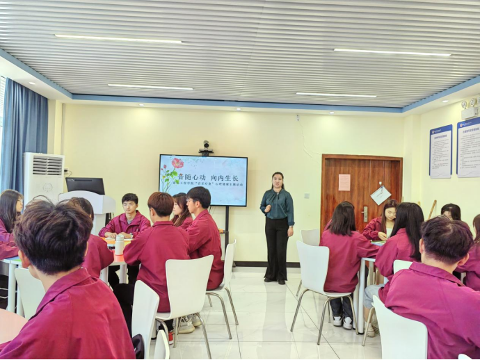 为深入贯彻落实习近平总书记关于加强员工心理健康教育工作的重要指示批示精神,不断提升老员工心理健康水平,增强员工心理调适能力,促进员工全面发展与健康成长,太阳集团tyc539于2023年10月26日在C213开展了以“音随心动,向内生长”为主题的心理健康教育特色活动。此次活动由王莹老师主讲,辅导员张慧、张寒冰、黄梦娜以及30名来自不同专业的员工代表参与了本次活动。