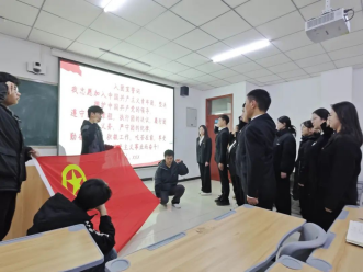 团支部书记冀铭萱带领全部团员重温誓词,誓词慷慨激昂,同学们心潮澎湃,更加坚定了内心崇高的理想信念。