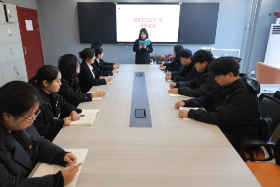 团支书对班级建设近况进行汇报,涵盖思想、学风、活动组织等方面成果,并对未来的工作提出了明确的目标和计划,呼吁团员团结协作助力班级发展。
