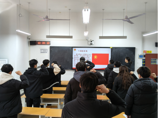 重温入团誓词时,全体团员面向团旗,右手握拳,庄严宣誓。“我志愿加入中国共产主义青年团……”誓言字字千钧,回荡在会场,让团员们再次坚定理想信念,牢记入团初心,强化对共青团组织的认同感和归属感。