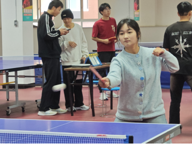 乒乓球赛正酣,选手们身手矫健。抽杀、旋球,精彩频现,赛场气氛热烈非凡。