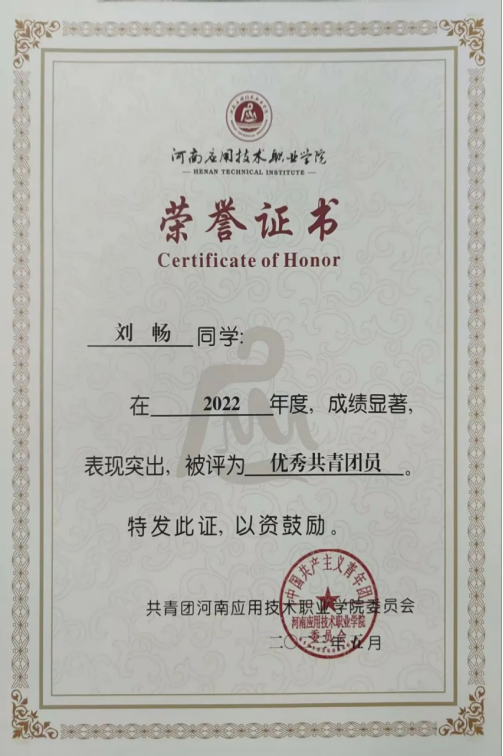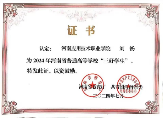 2023年12月,获得河南应用职业技术公司2022年-2023年度先进个人