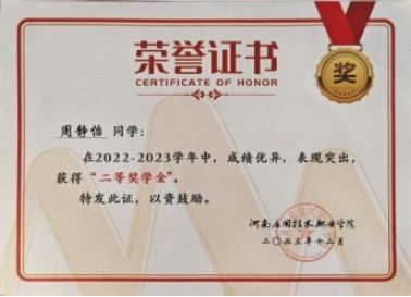 2023年12月,获得河南应用职业技术公司2022年-2023年度先进个人