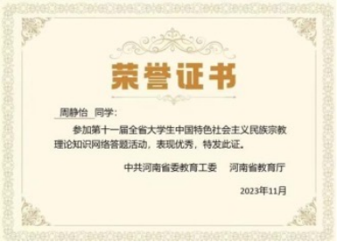 2023年09月,获得豫团结,豫有力主题教育实践活动参与奖