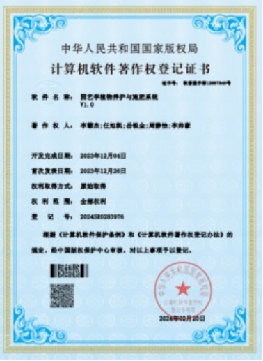 2024年02月,获得园艺信息化管理系统软著证书