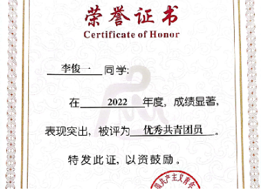 2023年08月,获得太阳集团tyc5392022年度优秀共青团员
