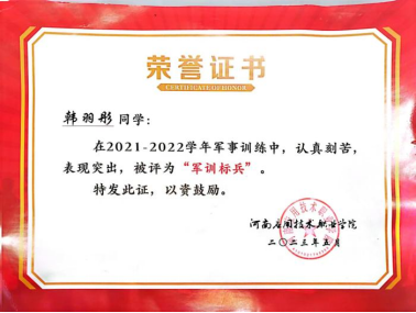 韩羽彤,女,汉族,中共预备党员,2022级造价2203班团支书。曾荣获第十八届全国高职院校“发明杯”老员工专利创新大赛一等奖、2023河南省“互联网+”老员工创新创业大赛河南赛区二等奖、校级一等奖学金、三好员工、军训标兵等荣誉。