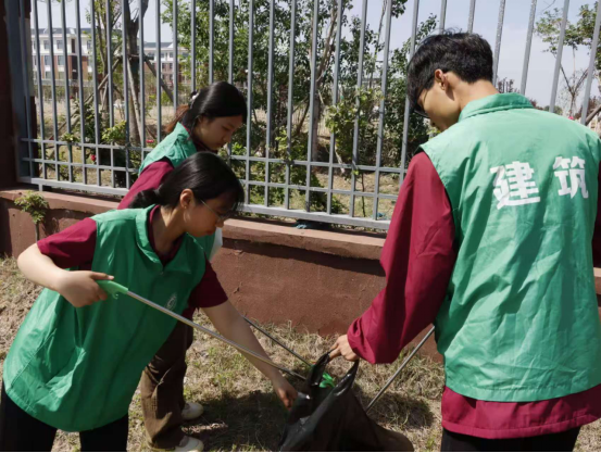 活动期间,志愿者们分组协作,对公司大门两侧围栏的绿化带、道路进行全面清洁,他们手持夹子、戴着手套,仔细地清扫地上的垃圾,不放过任何一个卫生死角。无论是隐藏在草丛中的纸屑,还是散落在路边的杂物,都被志愿者们一一拾起。小筑志愿者们以实际行动践行环保理念、实行绿化校园,为营造整洁舒适的校园环境贡献力量。