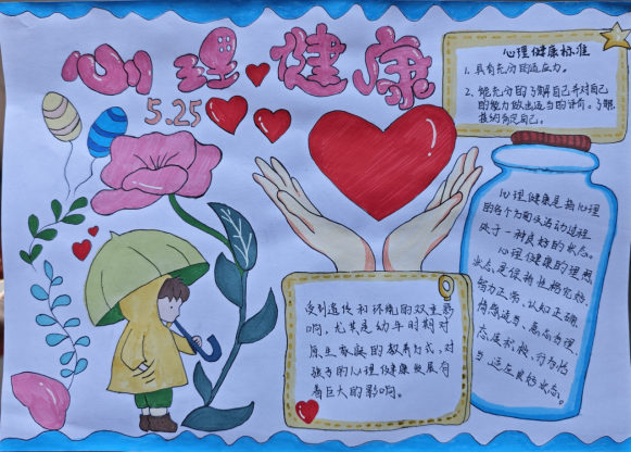 手抄报活动同样精彩纷呈。同学们发挥创意,用色彩斑斓的画笔和精心设计的图案,将心理健康知识与艺术表现形式完美结合。每一份手抄报都独具匠心,不仅传递了积极向上的心理正能量,还展示了同学们丰富的想象力和创造力。