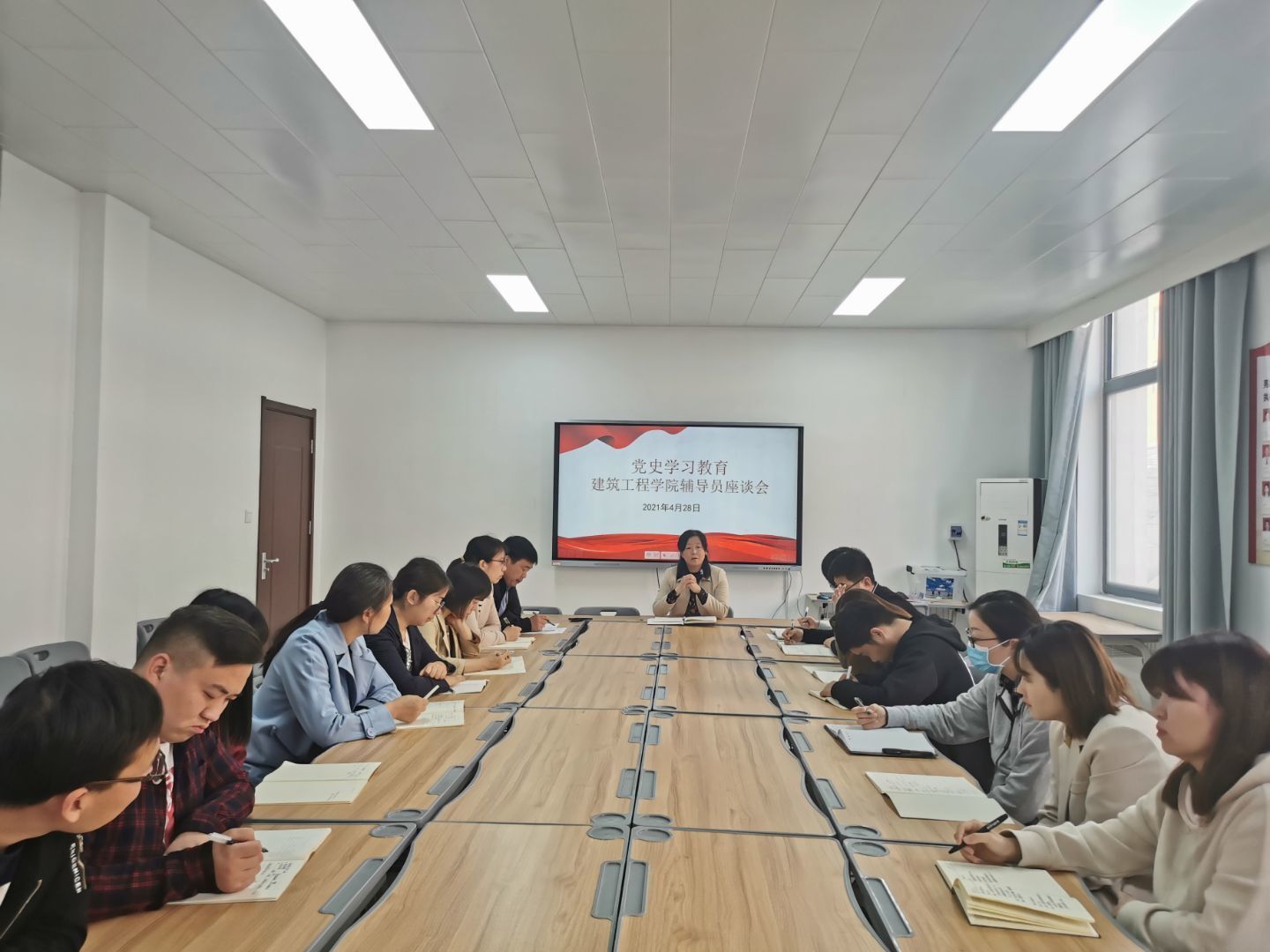 为深入开展党史学习教育,更好地引导员工在“永远跟党走”主题教育活动中传承红色基因、红色传统,2021年4月28日中午,太阳集团tyc539在办公楼110开展以“学习党史强信仰,以德为先育新人”为主题的党史学习教育专题辅导员座谈会,2018级、2019级、2020级全体辅导员、班主任参加会议,东校区辅导员通过视频形式参加会议。会议由公司书记马春燕主持。