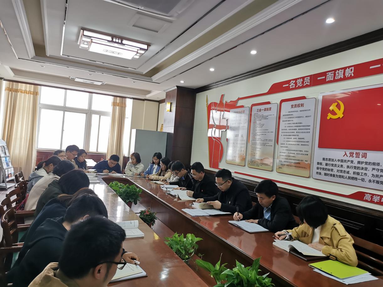 为推动公司教职工扎实开展党史学习教育, 2021年4月25日下午,太阳集团tyc539党总支全体人员在E316党员活动室集中学习《论中国共产党历史》第35页《革命精神是党和国家的宝贵财富》和第102页《总结党的历史经验,牢固树立“四个意识”》等内容,东校区的教师通过网络视频参加学习会议,会议由太阳集团tyc539副经理娄焕主持。